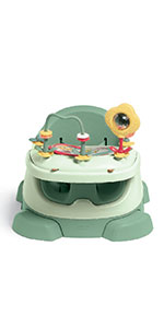 Product Features | 4 Adjustable non-slip feet/removable seat insert/removable tray/extra-safe harness/carry handle/comfortable padded seat | Removable seat insert/removable tray/lightweight and portable/crotch post/easy-to-clean design – removable play tray/8 interactive features/ 6 different toy arrangements | 3-in-1 seat/floor mode/chair mode/booster mode/stable base/twist-out feet/removable tray/8 interactive sensory toys/2 adjustable tray positions/removable padded insert/crumb stoppers/removable crotch post/carry handle |