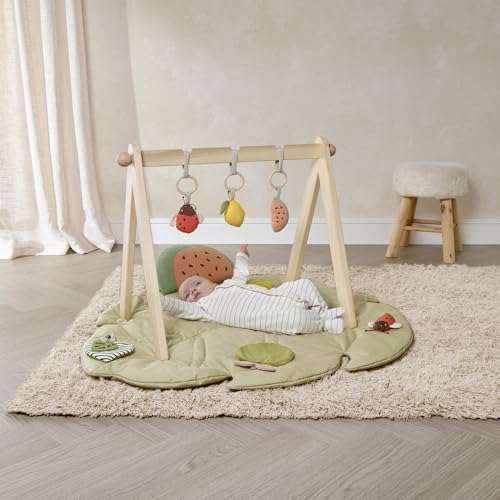 Let your little one’s imagination roam with this safari-themed baby play mat. Shaped like a soft jungle leaf, this cosy mat offers tummy time fun and relaxing moments. With tactile fabrics, crinkles, rattles, and squeakers, baby will love exploring new sounds and textures. The adorable watermelon cushion aids tummy time, while the teether provides soothing comfort, making it the perfect playtime accessory.