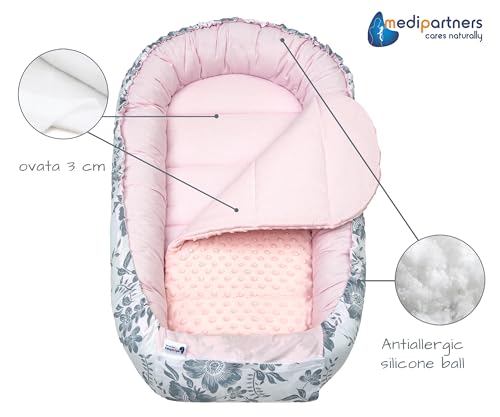 Medi Partners Baby Nest Pod for Newborn Babynest Sleep Bed – 100x60x15 Lounger Essentials 0-12 Months sleeping bilateral Cocoon 100% Cotton (Berry with pink Plush)