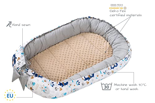 - ALL MATERIALS ARE OF THE HIGHEST QUALITY – The materials used to make the baby nest are Oeko-Tex 100 certified, meaning it can be used in contact with a child's sensitive skin. The babynest is hand-sewn in Poland, which clearly distinguishes it from cheap imported products.