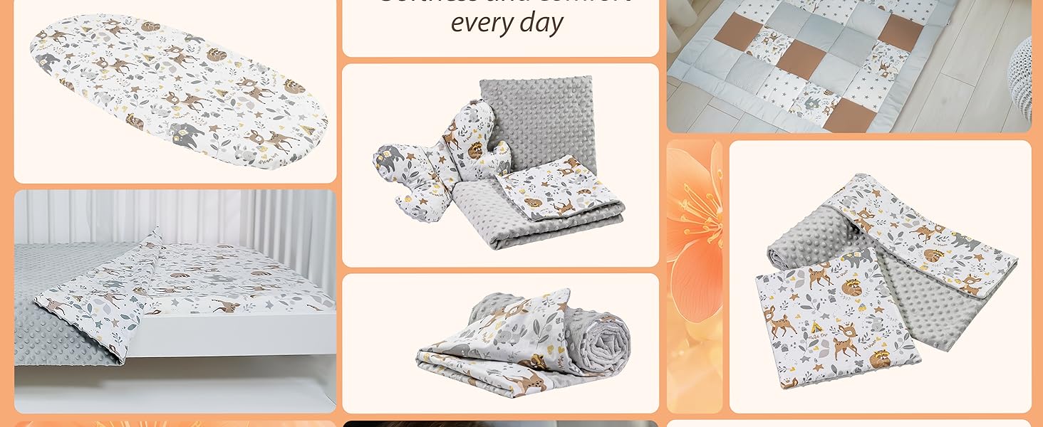 ” data-position=”triggerHorizontal” />Baby Blanket & Pillow SetBaby blanket 75×100 cm & pillow 35×30 cm. Double-sided with cotton & Minky fabric, soft, breathable & durable. Perfect for bed & stroller, lightweight, cozy, easy to care for & washable.