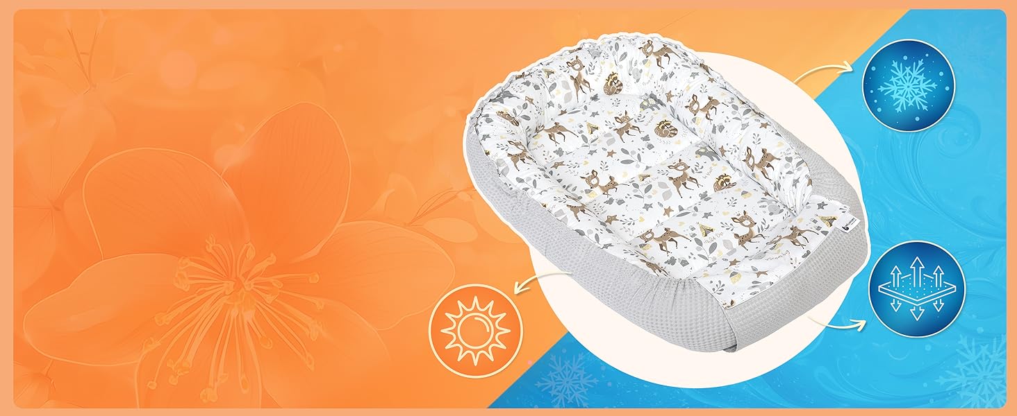 - ALL MATERIALS ARE OF THE HIGHEST QUALITY – The materials used to make the baby nest are Oeko-Tex 100 certified, meaning it can be used in contact with a child's sensitive skin. The babynest is hand-sewn in Poland, which clearly distinguishes it from cheap imported products.
