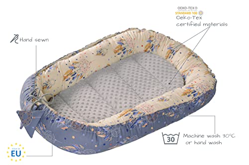 - ALL MATERIALS ARE OF THE HIGHEST QUALITY – The materials used to make the baby nest are Oeko-Tex 100 certified, meaning it can be used in contact with a child's sensitive skin. The babynest is hand-sewn in Poland, which clearly distinguishes it from cheap imported products.