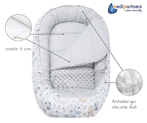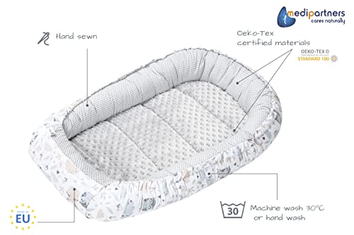 Medi Partners Baby Nest Pod for Newborn Babynest Sleep Bed – 100x60x15 Lounger Essentials 0-12 Months sleeping bilateral Cocoon 100% Cotton (Light with Grey Plush)