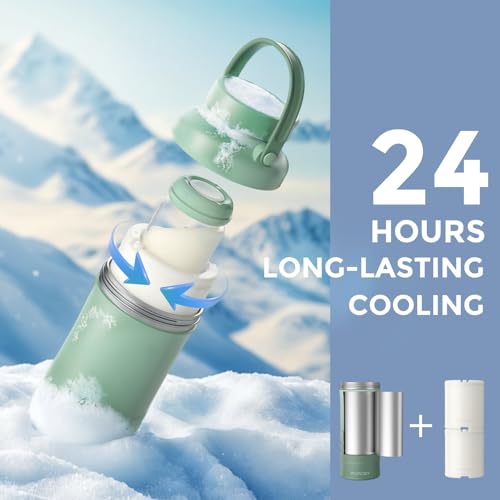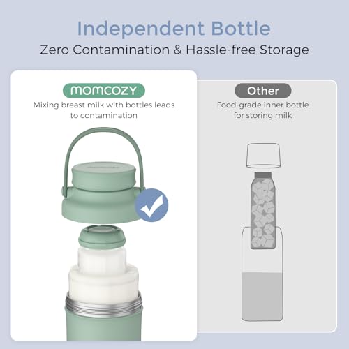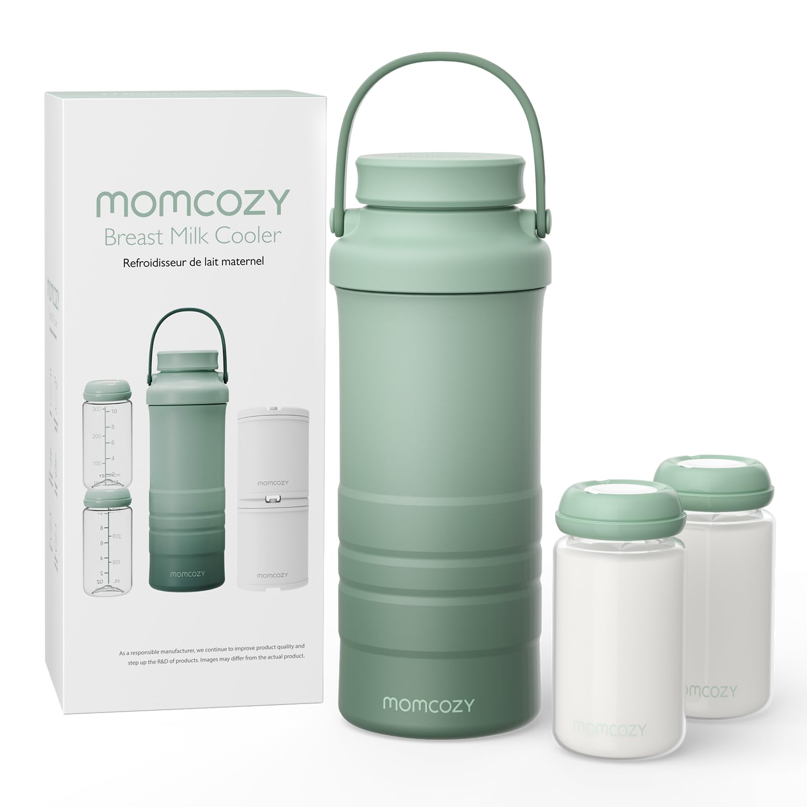 Momcozy 22oz Portable Breast Milk Cooler for Outdoor, Life Saver with 360° Total Cooling for 24 Hours, Larger Capacity Travel Breastmilk Chiller with 2pcs Baby Bottles for Breastmilk Storage, Gree