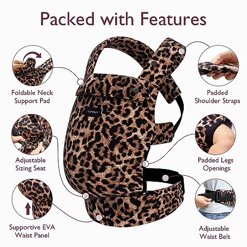Momcozy Baby Carrier – Ergonomic, Cozy and Lightweight Carrier for 3-24 Months, Effortless to Put On, Ideal for Hands-Free Parenting, Enhanced Lumbar Support, Leopard