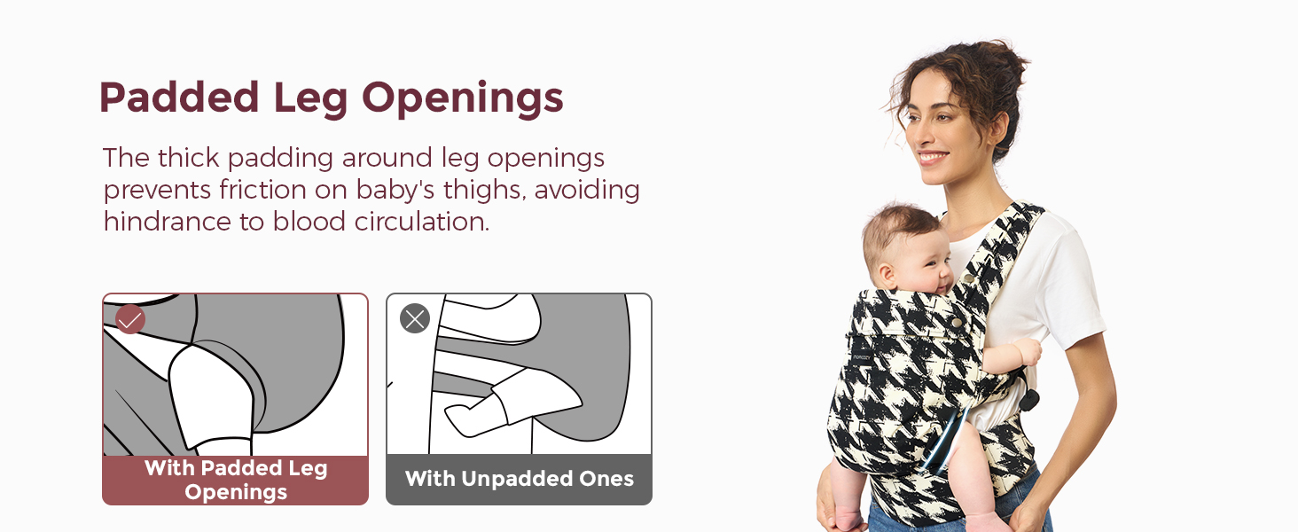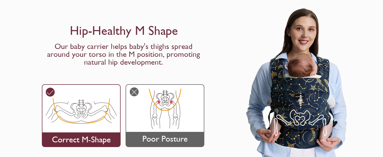 - Tailored to Grow Together: Our carrier features three adjustable sizing positions, catering to your child's growth at every stage for 3-24 Months. Achieve a safe fit and Ergonomic natural "M" position, regardless of your baby's size that ensures baby's healthy hip and spinal development. Padded legs openning ensures unobstructed blood circulation in baby's legs, providing both comfort and safety.