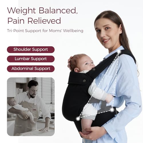 Momcozy Baby Carrier – Pure Cotton Carrier for 3-24 Months, Effortless to Put On, Ideal for Hands-Free Parenting, Enhanced Lumbar Support, Black