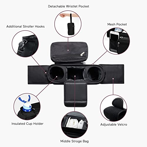 Momcozy Baby Pushchair Organiser, 3 Insulated Cup Holder,Detachable Zippered