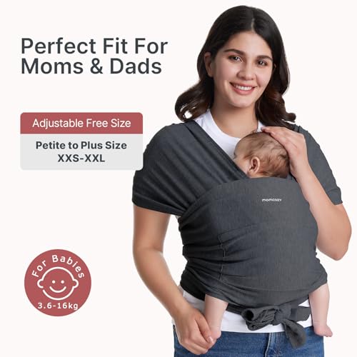- Momcozy baby wrap carrier is fully adjustable to fit sizes from XXS to XXL, making it ideal for different body types and postpartum changes. Whether you're a new mom or dad, the wrap adapts to your shape and your baby's growth, allowing the whole family to use it comfortably. Unlike traditional carriers that tend to loosen with use, this design stays secure and keeps your baby well-supported.