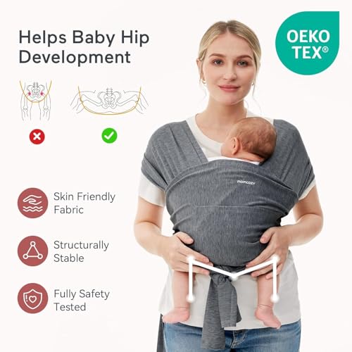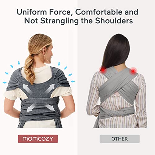 Momcozy Baby Wrap Carrier, Easy to Wear Infant Carrier Slings, Lightweight Hands Free Baby Sling, Adjustable Baby Carriers for Newborn to Toddler 3.6-16kg, Gray