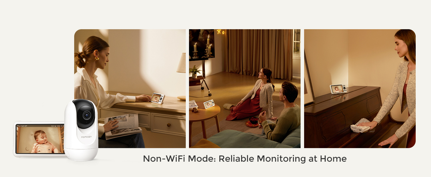- 【WiFi or Non-WiFi Choices — Monitor Your Way, Anytime, Anywhere】Stay connected with your baby no matter where you are. Choose the non-WiFi parent unit for secure, real-time monitoring at home, or use the Momcozy App to check the live feed on the go. With advanced encryption technology, your baby’s video remains private and protected, giving you peace of mind while staying close to what matters most.