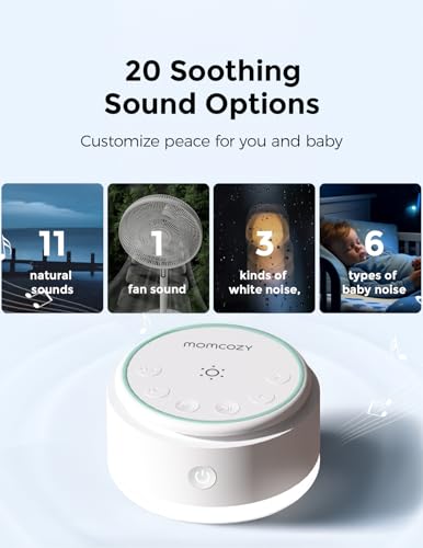 Momcozy Sound Machine for Baby, 20 Soothing Sounds & Touch Light Portable White Noise Machine with Sleeping Timer and Memory, Ideal Travel Companion & Nursery Must-Have, Outing