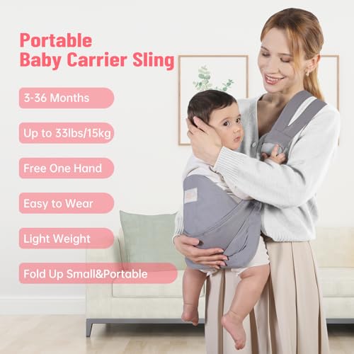Mumgaroo Baby Sling, Adjustable Toddler Carrier, Breathable Baby Sling Carrier with Thick Shoulder Straps for Newborn, Infant, Toddler, 3-36 Months (Grey)