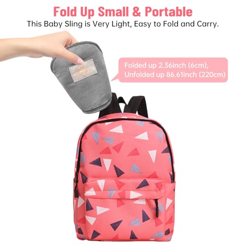 - 【Breathable & Comfortable & Portable】Made of natural and comfortable cotton materials, the fabric is soft and has good air permeability, suitable for use in all seasons. The baby sling carrier 3-month to toddler weighs only 410g, folds up to 6cm, occupies only a small space in the diaper bag, making it very suitable for going out
