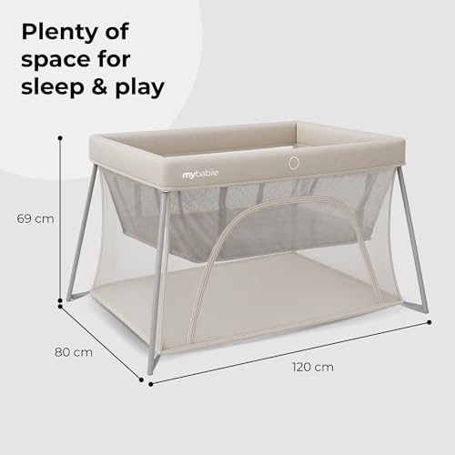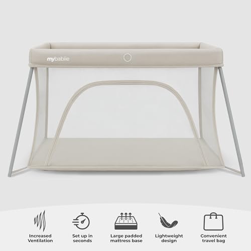 My Babiie MBTC3 Air-Light 3-in-1 Travel Cot, Bassinet, Playpen – Lightweight, from Birth to 15kg, Foldable, Travel Bag, Padded Mattress, Mesh Sides – Ivory