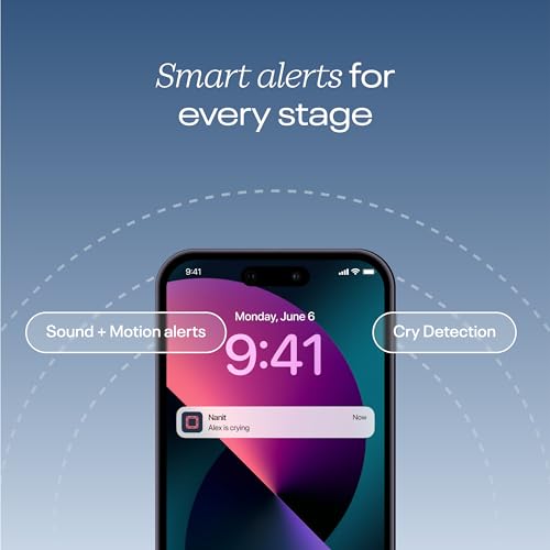 - Smart Alerts: Nanit detects and notifies you in-app when baby really needs you—from Alert Zone to Cry Detection and real-time sound + motion alerts. Alert Zone feature (exclusive to the Flex Stand) allows you to detect whether your child has entered an off-limits area, triggering an alert to your device* Sleep tracking and analytics,* plus sensor-free Breathing Motion Monitoring, Temperature + Humidity Tracking, and 2-way audio
