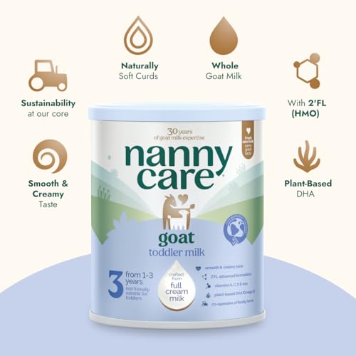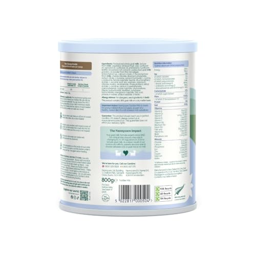 Nannycare Stage 3 Toddler Milk is a premium goat milk formula, made with whole A2 goat milk and minimal processing to help preserve its natural qualities. We maximise the use of whole milk for a more naturally based formula, carefully tailored to help support the nutritional needs of toddlers from 1-3 years. A gentle, evidence-informed alternative to cow’s milk formula, developed by the UK’s goat milk formula experts. Why Goat MIlk? Choosing the right formula can feel overwhelming, especially when your little one’s comfort is at stake. Most formulas are based on cow’s milk, not because it’s the best fit, but because it’s widely available. Nannycare offers a meaningful alternative. Goat milk has natural properties that more closely resemble breast milk, the gold standard, than cow’s milk. It forms softer curds and contains higher levels of oligosaccharides and MCTs. We use whole goat milk as 100% of the protein base, preserving more of its natural qualities, including milk fat, MFGM, and other valuable nutrients. In fact, we use twice as much whole milk in our formula compared to our closest competitor. We Are The Goat Milk Formula Experts As the UK’s goat milk formula experts, we led the pivotal clinical trial that changed regulations to allow goat milk formula to be sold in the UK. With over 30 years of specialisation and a portfolio of 97 scientific studies informing our work, we remain committed to advancing goat milk-based nutrition for babies and toddlers. Our New Look We’ve made a small update to our formula, adding two ingredients in line with recent developments in baby nutrition, while keeping the same gentle base you know and trust. 2’-FL: In addition to the prebiotics already found naturally in our goat milk, 2’-FL is the most abundant HMO in breast milk and supports gut health. Plant-based DHA: Now from a plant source instead of fish oil — free from fish allergens, with high purity and more sustainable sourcing. Everything else remains true to our trusted approach, starting with our whole goat milk base, using fewer added oils, and staying committed to minimal processing and higher levels of natural ingredients.