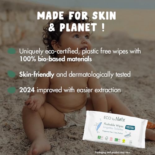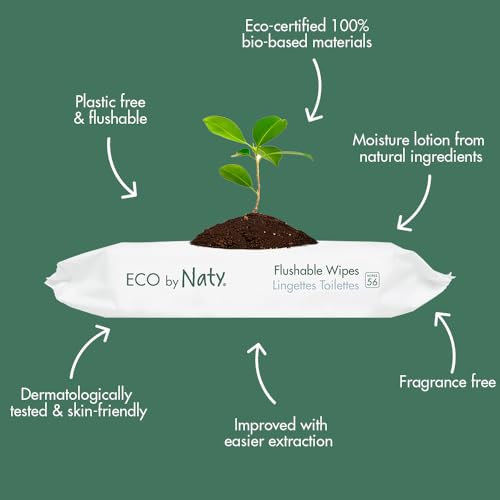 Naty Flushable Baby Wipes – 100% Plant-Based, Plastic-Free, Fragrance-Free