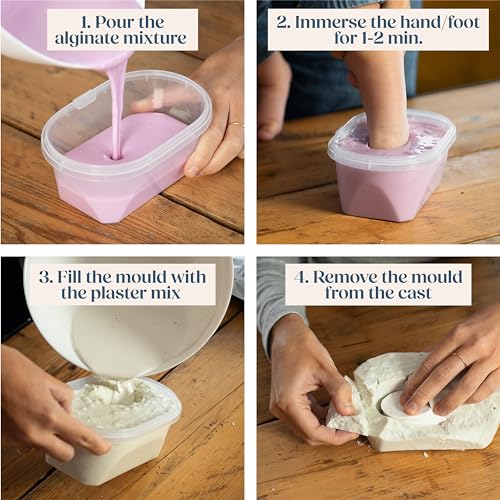 - FUN & EASY TO USE – Create the mould by mixing the alginate with water and immerse your little one’s hand or foot for as little as 1-2 minutes. Mix the casting powder with water, add it to the mould, and leave to dry. Carefully remove the cast from the mould and personalise your foot and hand cast kit to your liking.
