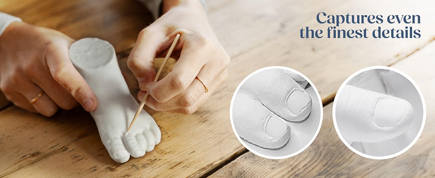 - CAPTURES EVERY DETAIL – Made from high-quality materials, this DIY hand casting kit captures every adorable wrinkle, every tiny nail, and every skin fold, leaving you with an intricate sculpture of your little one’s hand and foot. All of our hand casting kits are non-toxic and gentle on your little one's skin.