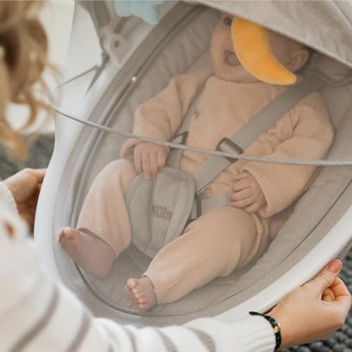 - COMFORTING SWAYING ACTION – The Nuby baby swing seat provides that extra set of arms you wish you had by recreating parents natural side to side gentle rocking motion most babies love. The adjustable 5-point harness will keep your little one safe and secure. This baby bouncer chair is suitable from newborn babies right up to 9kg, making this part of your favourite baby essentials for newborn babies.