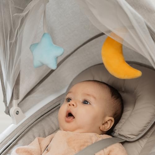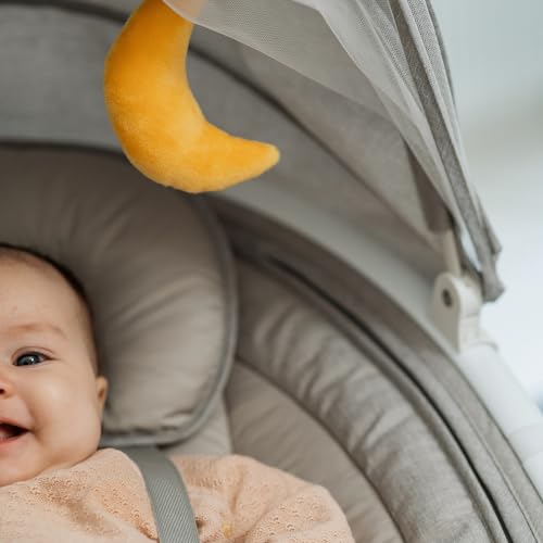 The gorgeous neutral design will suit most homes and nurseries while the cute hanging plush toys will entertain your baby as they relax.