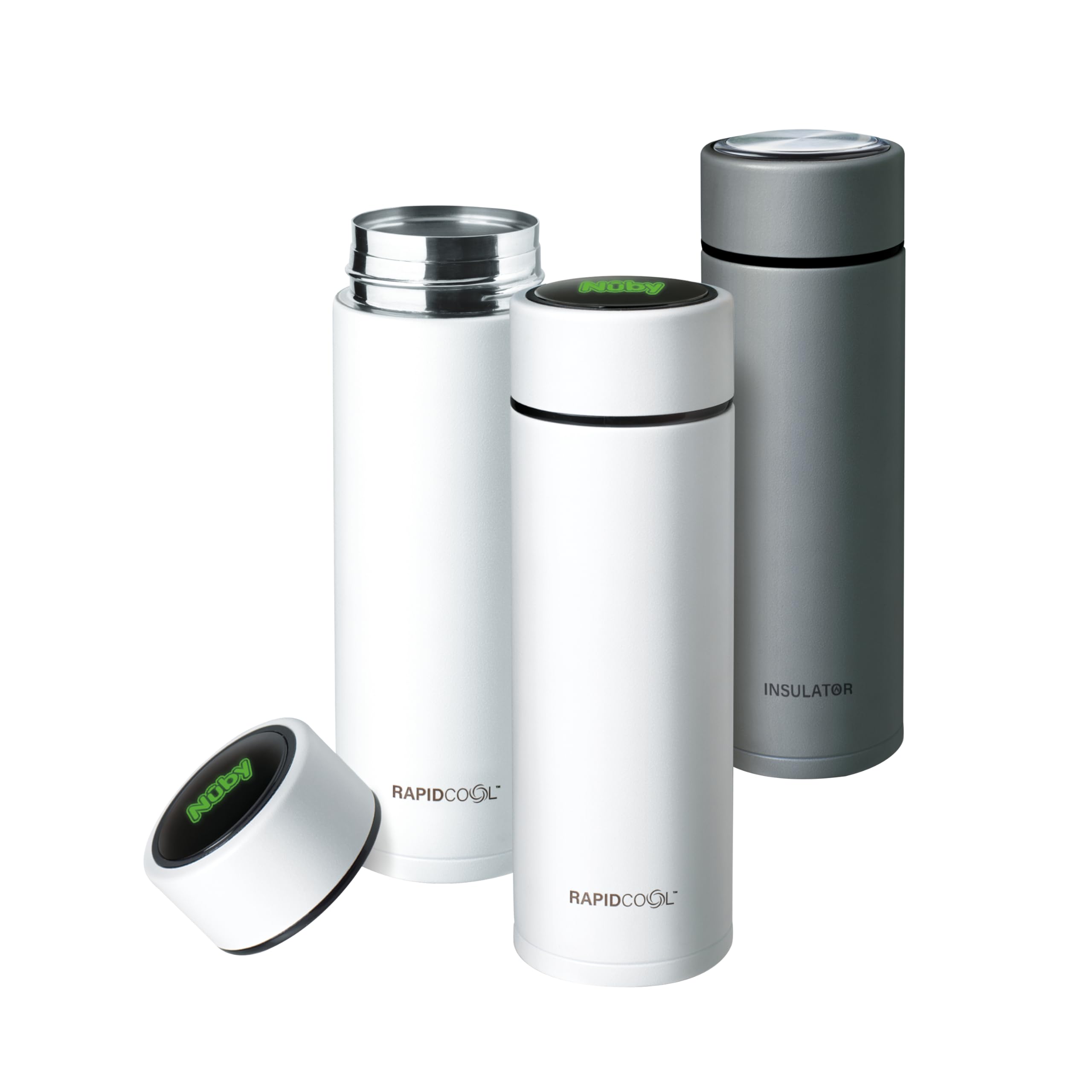 Nuby RapidCool Portable Baby Bottle Making Kit – Prepare A Perfect Formula Feed in 2 Minutes | Includes: 2 Rapid Cool's with 2 Digital Thermometer Lids, 2 Powder Dispensers & Flask