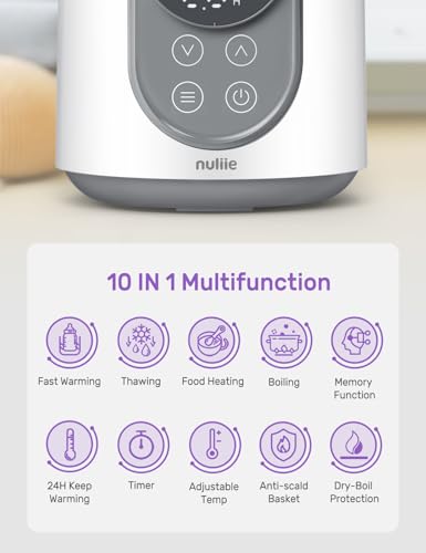 Nuliie Baby Bottle Warmer 10-in-1 with Digital LCD, Timer, Smart Temperature Control and Automatic Shut-Off, Food Warmer&Defrost BPA-Free Warmer for Breastmilk or Formula