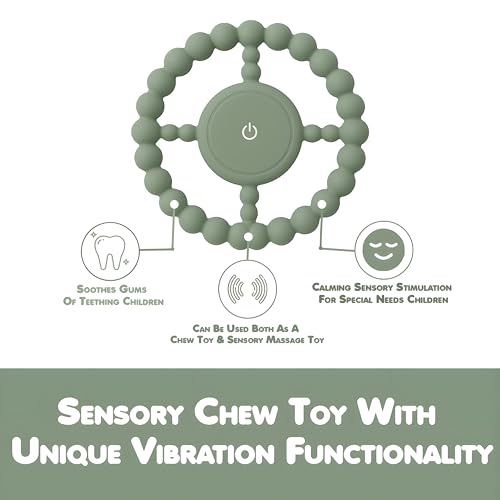 Soothe and support your child’s sensory needs with this vibrating sensory chew toy – designed for dual use as both a teething toy for babies and a calming chew toy for children with autism or special needs. Its gentle vibrations and soft, safe material offer comfort, sensory stimulation, and relief for growing teeth or sensory-seeking behavior. Warning: Choking Hazard This product contains small parts that may pose a choking risk.Adult supervision is recommended. Use with caution to ensure safe handling and usage.
