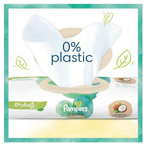 Pampers Harmonie Coco Baby Wipes Plastic Free 9 Packs of 44, 396 Baby Wet Wipes, with Coconut Oil to Moisturize & Protect Delicate Baby Ski