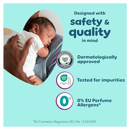 DOUBLE PROTECTION for skin and against leaks. Pampers’ best comfort and protection for sensitive skin, Pampers Premium Protection nappies are tested and approved by babies, We’ve crafted Pampers’ No. 1 nappy especially for babies’ delicate skin. And it’s our No. 1 against leaks, too, Pampers Premium Protection nappies give our best protection, thanks to 1) INSTANT ABSORPTION with 1000+ absorbent micropores that instantly pull wetness and mess away from skin, keeping it dry and protected. 2) Our innovative STOP & PROTECT POCKET to stop messy leaks escaping at the back. 3) CUSHIONY ULTRA-SOFT MATERIALS to hug your baby’s skin in a cloud of comfort and protection. And 4) Our unique COMFORT FIT with an overlapping fastening system. Pampers Premium Protection are 100percent safe for your baby’s skin. They are dermatologically-tested and do not contain any of the EU perfume allergens (as regulated in the EU Cosmetics Regulation No 1223/2009). They are approved by the dermatologists of the Skin Health Alliance and tested and certified according to Standard 100 by OEKO-TEX. No wonder newborns approve, Want to know more about the components we use? Visit Visit offcial Pampers webside.