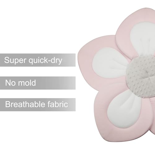 PandaEar Baby Bath Pad for Infant Newborn | Soft Flower 5 Petals for Sink Bathtub Essentials Shower Gift (Pink)