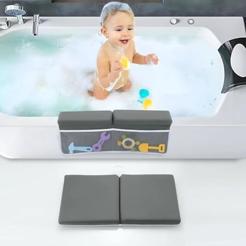 PandaEar Comfortable Baby Bath Kneeler and Elbow Rest Pad Set, Non-Slip Bathtub Kneeling Pad for Bathing Baby Tub Knee Mat, Bath Pad for Tub, Bath Tub Cushion Mat with Toy Organizer Storage Pockets