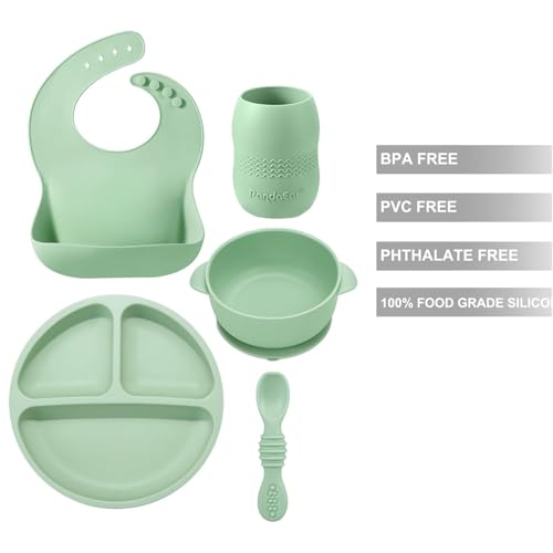 PandaEar Silicone Baby Feeding Set – 6-12 Months | LED Weaning Supplies – Bib + Plate with Suction + Cup + Bowls and Spoo