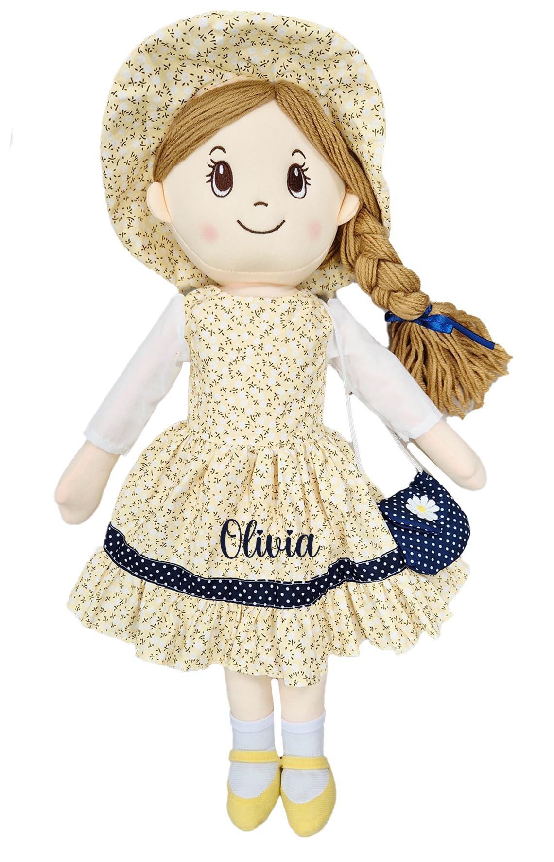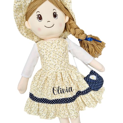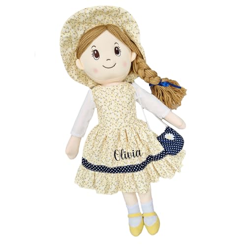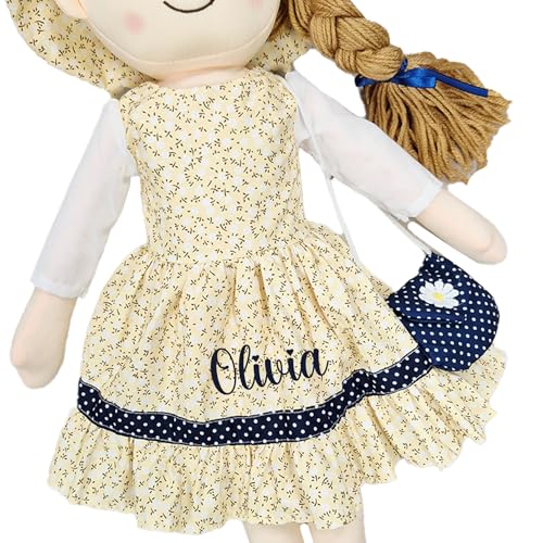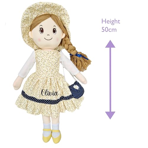 Personalised Baby Girl Rag Doll Soft and Cuddly Princess Ragdoll (Yellow/Navy Ragdoll)