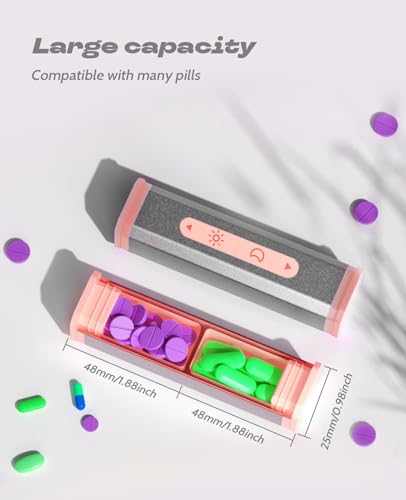 - HIGH QUALITY MATERIAL: This pill box is made of upgraded technology, aluminum metal frosted shell + food-grade material, the shell does not need to worry about cracking, scratching or fading, the sealing of the pill box prevents the pills from moisture. Let you fill the medicine safely and more assured.