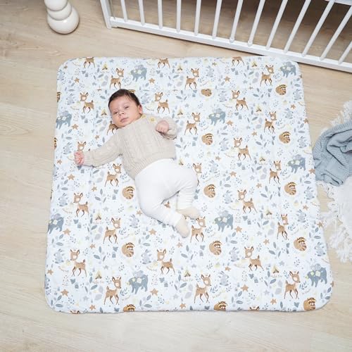 Play Mat for Baby Cotton Playmat Foldable Large – Soft Padded Floor Rug for Kids and Babies Washable Portable mat for Nursery Oeko-Tex certified