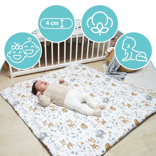- ️ 【COMFORTABLE PADDING】 – The approximately 4 cm thick filling of the baby play mat protects against cold and hard floors and provides soft support for the first crawling attempts.