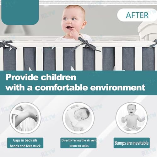 - [Quality Materials]:This bed rail, crafted from high-quality, breathable cotton fabrics to make soft, skin-friendly baby bed bumpers, is compatible with Crib Rail Cover Baby and Crib Bed Liner Cot setups. It remains soft, cozy, gentle, and durable even with daily contact, prioritizing both comfort and long-term use.