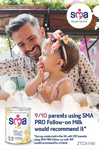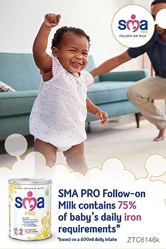 - SMA PRO Follow-on Baby Milk is tailored for babies 6 months+ as part of a varied weaning diet and contains Iron to help support normal cognitive development