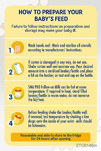 - Convenient for on-the-go, SMA PRO Follow-on Baby Milk ready to use liquid resealable cartons do not require any preparation, just shake and pour into a sterilised bottle or beaker
