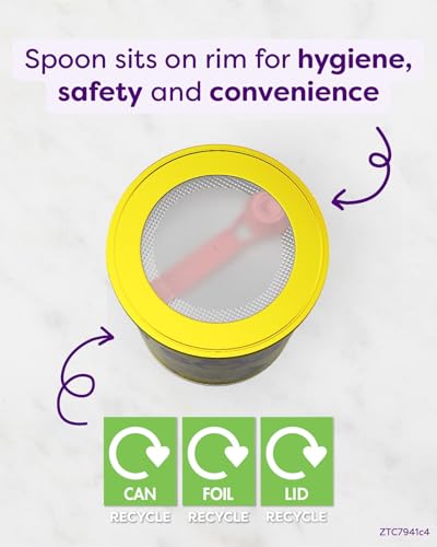 Pull the safety seal and open the lid. The scoop is provided under the lid. Lift the tab, pull on the foil seal, carefully and safely remove the seal and dispose of it. Step 2 – Wash hands well. Wash and sterilise all utensils according to manufacturers’ instructions. Step 3 – Boil 1 litre of fresh tap water. Allow boiled water to cool for no more than 30 minutes. Do not use artificially softened or repeatedly boiled water. Step 4 – Strictly follow the feeding table. First, pour water into a sterilised bottle, carefully – it is hot. Then add the powder using only the scoop provided, carefully levelling off each scoop with the back of a clean dry knife. Store the scoop across the inner rim of the can and replace the lid. Step 5 – Place the sterilised teat and cap on the bottle and shake well until powder is fully dissolved. Cool bottle under cold running water or in a bowl or jug of cold water until lukewarm, do not immerse the teat. Test temperature by shaking a few drops onto the inside of your wrist.