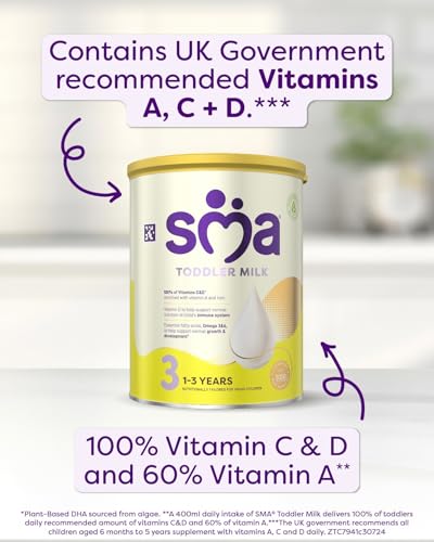 - SMA Toddler Milk contains 100% of vitamins C & D and is enriched with Vitamin A and iron