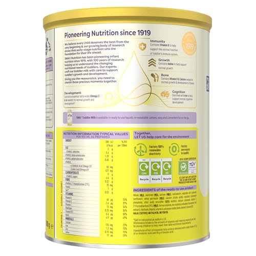 - SMA Toddler Milk contains essential fatty acids Omega 3 & 6 to help support normal growth and development