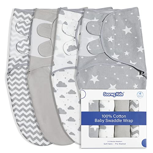 - 4 WRAPS: Baby swaddle 4 pack Small, 0-3 months for baby born, fits 7-14 pounds, up to 26 inches. Pink and grey for you to choose.