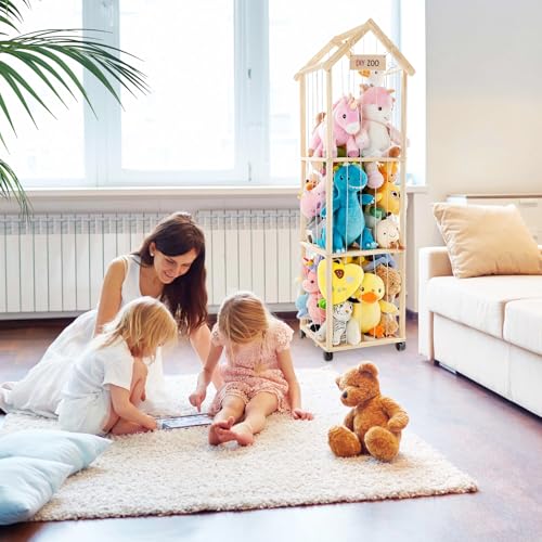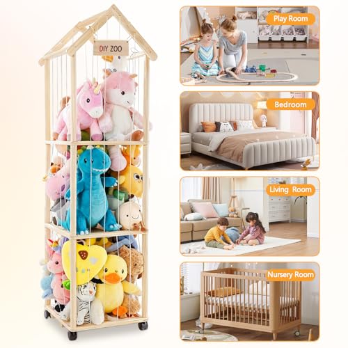 - 【Extra Large Stuffed Animal Storage】Caossuixin wooden soft toy storage cage features a three-tier design, measuring 150 × 40 × 40 cm.Its generous height of 59 inches enables vertical cuddly toy storage, making it effortless to organise extra large toy storage plush animals, balls, and various other items without occupying excessive floor space. This them neatly organised and easily accessible, fostering children's tidying and organising skills from an early age.
