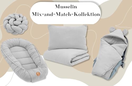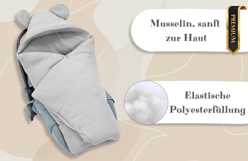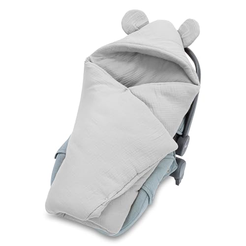 Swaddle Blanket Baby Muslin 90×90 cm footmuff for car seat or Stroller Ideal for Newborns in Warmer Weather Breathable and Lightweight Gray