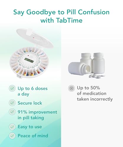 TabTime Automatic Pill Dispenser, 6 Alarms per Day. Solid Lockable Lid. Essential Medication Aid for The Elderly, Alzheimers & Dementia Patients