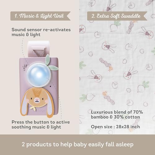 Taf Toys Bunny Soother & Swaddle Baby Gift Set. Baby Soothing Sound Machine with Cry Activated Sensor. Premium Bamboo-Cotton Baby Swaddle Travel Soothing Set. Suitable for Baby Boys & Girls 0 months +